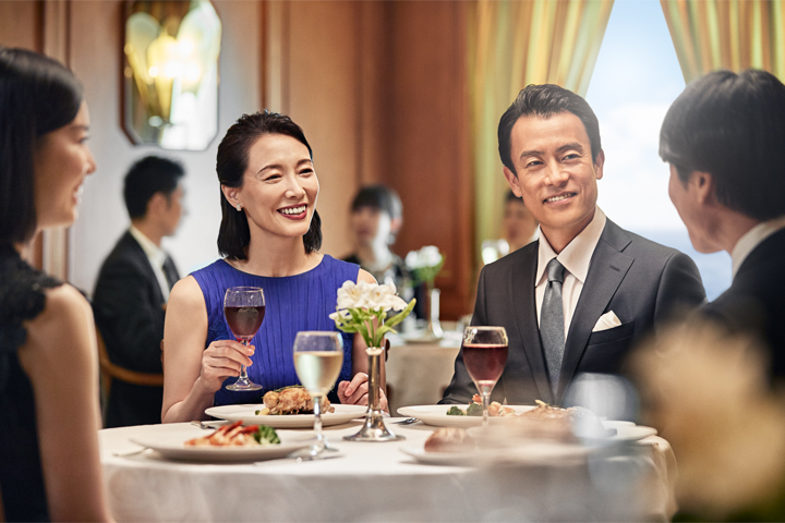 Concerto Dining Room: After final payment, through the MedallionClass® app, you may request your dining preference with Dine My Way℠. Customize your dining experiences nightly by choosing your seating time, dining companions and dietary needs.