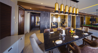 Suites feature an ocean view, large balcony, separate living space and a pool table. Some suites may consist of a One-Bedroom or Two-Bedroom Suite with adjacent Junior Suites to create a Four-Bedroom Suite.