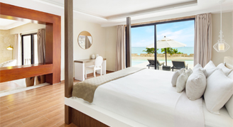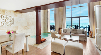 Rooms feature an ocean view and include a king bed, full bathroom, furnished living room and terrace. Includes butler service.