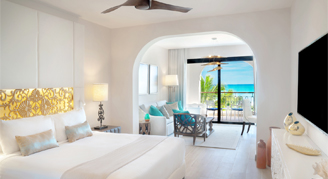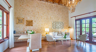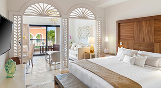 Rooms feature a Garden or Ocean view and are located in the Castle section. Includes a king bed, full bathroom, furnished living room and terrace. Includes butler service.