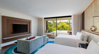 Stylish guest rooms with exotic tropical views, fine furnishings, and décor inspired by vibrant Dominican culture. Spacious 700 to 850 sq. ft. accommodations with private balcony. Whatever/Whenever service unique to the W brand.