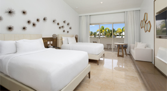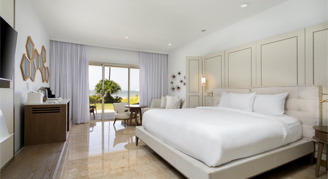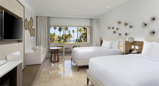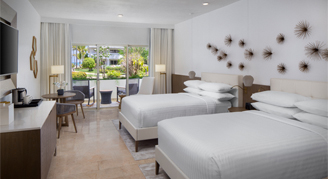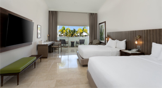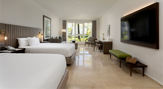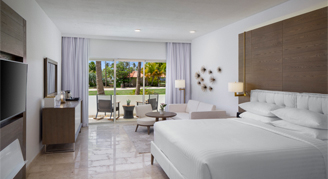Luxurious and spacious. Blissful luxury with marble, spacious baths and clean linen await your stay at the Hyatt Regency Grand Reserve. Rooms feature 49" smart televisions, premium channels, in-room coffee and tea, mini-refrigerator, make-up mirror, and safe. Higher category rooms offer a soaking tub and rain shower, separate lounge area, and terrace or balconies with views of the sea or lush tropical gardens.