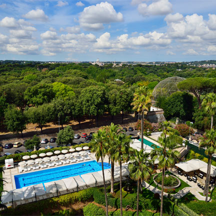 Parco dei Principi Grand Hotel & Spa is a sophisticated urban resort in Rome's Parioli district, just a 15-minute walk from Via Veneto. Recently renovated, the hotel now blends classic elegance with modern design, preserving original furnishings of historical value.