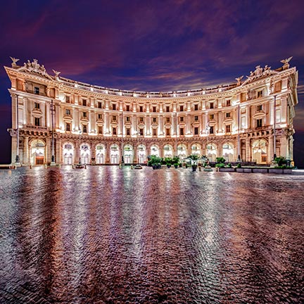 Immerse yourself in the splendor of ancient Rome in a crescent-shaped 19th-century marble palazzo fronting the Piazza della Repubblica and in front of the Baths of Diocletian.