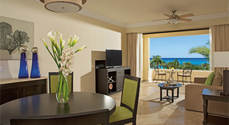 Suites feature a partial-ocean view or an ocean view. Additional amenities include a living and dining area.