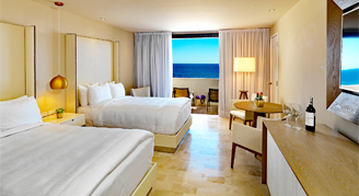 Located on the swimmable Medano Beach and within walking distance of downtown Cabo San Lucas. Some highlighted features are a rooftop pool, a full-service spa and a variety of dining options, including their own microbrewery and beach club.