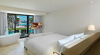 Each suite is stylishly decorated to create a soothing and relaxing ambiance with marble finishes and a double rainfall shower. Select suites feature direct access to a pool. Guests staying in The Reserve suite categories will enjoy additional services and amenities. Complimentary wireless internet access is offered throughout the hotel.