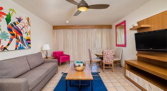 Casual suites feature traditional Mexican décor and a kitchen.