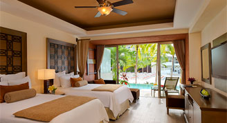 Spacious suites feature modern décor, marble floors, and a spacious bath with a separate shower and a Jacuzzi or a soaking tub. Select suites have direct access to the pool. Guests of the Preferred Club will enjoy additional amenities and services.