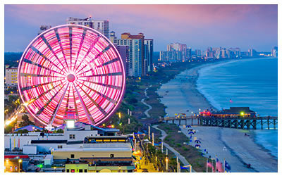 If you’ve always wanted to see the sunrise over the Atlantic Ocean, spend fabulous fun-filled days at the beach, and experience 60 miles of coastline, a vacation to Myrtle Beach will check all of those off and more. Relax on the beach. Shop at high-end retailers, specialty boutiques, and outlets. For amazing views of the beach, take a ride on the 187-foot tall SkyWheel. In Myrtle Beach, there is something for everyone and the southern hospitality is free.