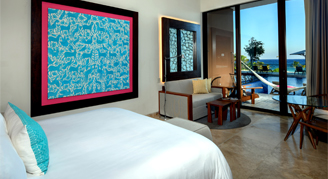 Additional amenities include direct access to a pool, access to an exclusive rooftop pool and restaurant, butler service and an in-room Jacuzzi.