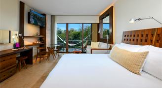 Suites feature a contemporary design and are located in one of ten Casas, each of which represents a natural element that pays tribute to the Mayan culture. Casas Agua and Fuego are adults only. Suites located in Casa Fuego offer access to an exclusive rooftop pool and restaurant.