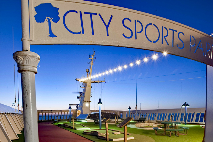 Everything the sunlight touches on Carnival Sunshine has been doused with an extra dose of fun. There's plenty to find atop this ship, where you can spend your days being kissed by the warm rays of the sun. Visit the biggest Serenity area ever, featuring three decks, plenty of recliners...and even a waterfall. Carnival WaterWorks, the onboard waterpark, boasts the slick Speedway Splash slide. There's also SportSquare, where you can let your inner champion run free (around the jogging track) or traverse SkyCourse high up.