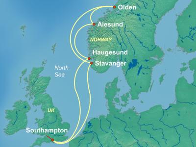 Cruise through Norwegian fjords and explore charming coastal towns on this summer seven night round-trip voyage from Southampton, taking in scenic nature and quaint villages.