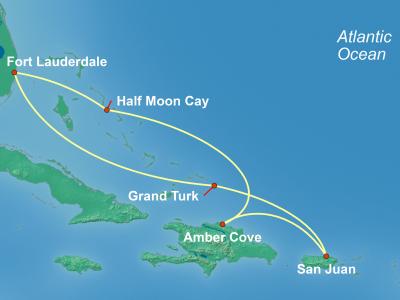 Embark on a blissful cruise to the Caribbean. Beach-comb your way across paradisal islands: Turks & Caicos, Puerto Rico, St. Thomas and Half Moon Cay.