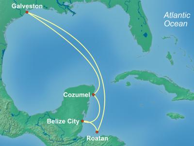 Set sail from Galveston, Texas, on an unforgettable cruise through the Western Caribbean. Your first stop is Cozumel, Mexico, where turquoise waters, vibrant reefs, and Mayan history await. Then, journey to Belize City, a gateway to lush jungles, ancient ruins, and world-renowned diving spots. Finally, soak up the natural beauty of Roatan, Honduras, an island paradise known for its coral reefs, exotic wildlife, and relaxed island charm. This tropical escape blends adventure, culture, and pure Caribbean bliss.