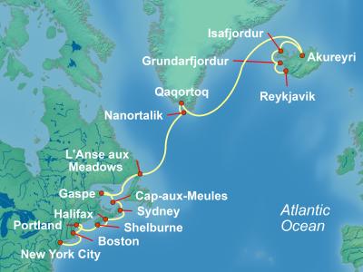 Steeped in history and bursting with contemporary flair, Reykjavík, the capital of Iceland, was founded around 870 C.E, marking the birth of the first permanent settlement on this island nation. The transit of the Prince Christian Sound is one of the highlights of cruising in Greenland. The approximately 60-mile sound cuts between the mainland and an archipelago of islands from east to west, under the southern edge of the massive Greenland Ice Sheet, which covers 80 percent of the island. At the tip of Quebec's southern peninsula, in the heart of the Gulf of St. Lawrence, Gaspé is like a remnant of Brittany marooned on the North American continent. The city rises from Halifax Harbour, still an important international port, however the area or wharves and warehouses known as the Historic Properties now host a thriving neighborhood of restaurants bars, galleries and shops. Sailing into Casco Bay and threading between a number of small islands, you are welcomed to Maine's largest town, and one of its busiest ports. Abundant with history, Boston is a pure delight for any visitor. Independent explorers can trace the past 200 years of American history by walking the "Freedom Trail." Merely sailing into the harbor of New York past its world-famous skyline is sure to win a special place in your travel diary. Although it will be quite early in the morning, this fabulous experience is well worth getting up for.