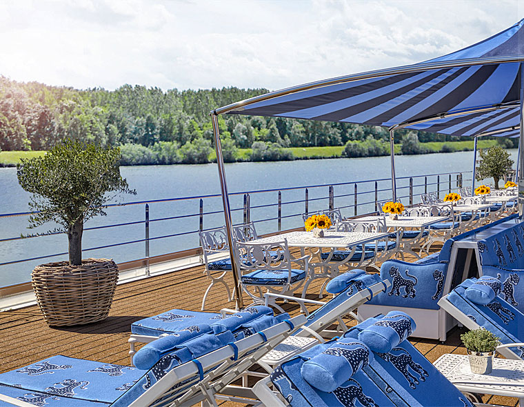 With her transformation, the S.S. Bon Voyage will debut a completely different look—including a redesigned top deck with an added swimming pool and lounge area, with an adjacent casual dining venue featuring lighter fare with a local spin and chef-led cooking classes. Inside, four new gorgeously-appointed suites will be introduced, as well as marble bathrooms throughout the ship, an enhanced dining room with an added chef demonstration area, and a new bistro inspired by Bouillon Pigalle in Paris. All finished perfectly in the unique and beautiful design aesthetic that Uniworld is known for, and paired with the addition of more crew members for a higher crew-to-guest ratio.