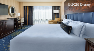 Rooms at the Disneyland Hotel are both sophisticated and whimsical, paying loving tribute to the classic years of Disneyland Park. Upscale styling, state-of-the-art amenities, and special Disney furnishings—including light-up Sleeping Beauty Castle headboards and timeless artwork—provide a stay your entire family will treasure.
