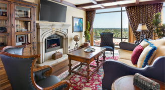 The Big Thunder Suite is intricately designed with a Big Thunder theme throughout and consists of two bedrooms, one with a king bed and one with a queen bed. The master bedroom includes an ensuite bathroom featuring dual vanity sinks, a deep soaking tub and separate shower. The living room features a sitting area with a fireplace and queen-size pull-out sofa, dining table with seating for eight, and wet bar with a sink, mini-fridge and Keurig coffee maker. Additional amenities include nightly turndown service and exclusive access to The High Key Club.