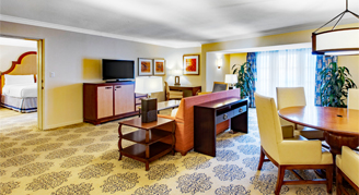 Located near the Plaza and close to the lobby, these suites provide easy access to resort activities. Suites offer a living and dining room that seats four people, a spacious sitting area and a queen-size pull-out sofa bed.