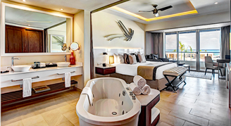 Suites feature an ocean view, separate living space, bathroom Jacuzzi tub and have a private balcony or terrace.