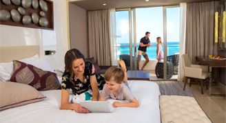 Suites feature an ocean view, large balcony, separate living space and a pool table. Some rooms may consist of a One-Bedroom Suite with adjacent Junior Suites to create a Three-Bedroom Suite.