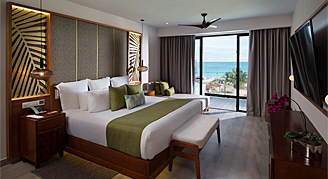 Dreams® Macao Beach Punta Cana - All-Inclusive offers 500 guest rooms and suites with beautiful views and spacious quarters. Families can be steps away from the water park, lazy river, Explorer's Club for Kids and Core Zone Teens Club. Or try a suite, with beautiful views of the garden, pool or ocean and easy access to our gourmet restaurants and bars. Each room is equipped with the all-inclusive amenities of Unlimited-Luxury®. Calming neutral tones are accented by deep teals and blues with hints of the tropical island throughout.
