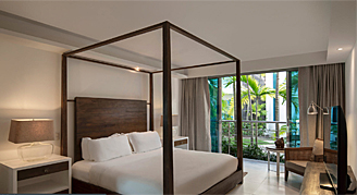 Located poolside with ocean views, suites include easy access to hotel facilities and feature a private terrace overlooking the ocean, three king beds (one in each room), bathroom with shower, a fully equipped kitchen, washer and dryer, and sitting areas.