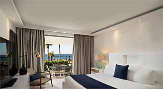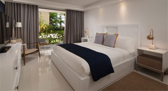 This amazing suite features three rooms, each with its own private bath and wardrobe. These luxurious units offer a fully equipped kitchen, washer and dryer, and private terrace with sweeping views of either the resort, pools and/or ocean.