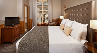 Start your Parisian experience from this lovely room with a double bed. You will have all the services and amenities you need at your disposal, such as 40'' LCD TV , Wi-Fi, desk and safe. Your stay in Paris will be truly unforgettable.