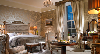 The Grace Kelly Suite is luxurious, named after Hollywood's Princess of Monaco, and includes a bedroom, sitting room, and dressing area. Positioned at the corner of the Main House, it offers breathtaking views of both the mountains and Killarney town. The Jackie Kennedy Suite is inspired by former First Lady and exudes grace and sophistication. It features one or two bedrooms, a separate sitting area, and panoramic views of the hotel's gardens and the surrounding mountains. The Ambassador Suite reflects timeless elegance with one bedroom located in the Main House. With tall, south-facing Victorian windows, it overlooks the hotel's gardens, allowing natural light to fill the room.