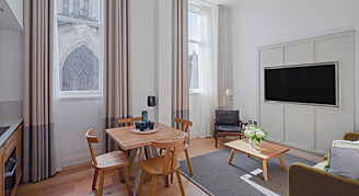 Cleverly designed to fit in all those useful ‘must-haves’ for a city stay, these suites combine slick open-plan kitchen, dining and seating areas furnished with the latest modern conveniences.