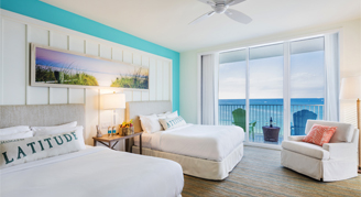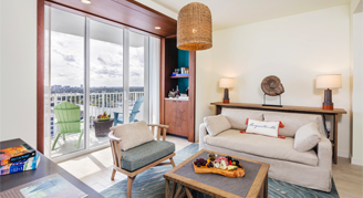 Rooms feature a view of the Intracoastal Waterway, the Nature Preserves, and North Lake or South Lake. Additional amenities include a private balcony, contemporary furnishings, and a large vanity and oversized shower.