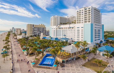 Located on the legendary Hollywood Beach Broadwalk, this resort offers the feeling of a classic South Florida beach town with stunning ocean views.