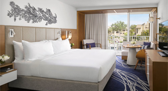 Fresh and comfortable, this nautical-styled room offers a king bed topped with crisp white linens to drift off to sleep. Featuring refined furnishings with coastal décor and hues complementing the outdoor views. This spacious room provides a lounge space, conveniently located USB charging ports and a 55-inch HDTV. Relax and renew in a rain shower bath accessorized with Crabtree & Evelyn® amenities. Thoughtful touches of ocean-inspired art and plush bedding create a welcoming stay in alluring comfort.