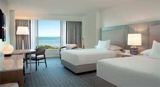 Check into this villa-style room with two double beds, featuring porcelain tile floors, a mini-fridge and a patio. The room is a scenic five-minute walk from the main tower and is near the bayside pool and Oystercatchers Restaurant.