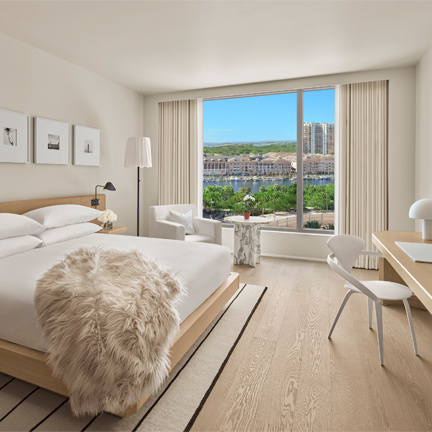 Indulge in a suite featuring a large bedroom with a king bed and full bathroom, scenic bay views, expansive windows for natural light and separate sitting areas with a half-bath. Located on floors 10 – 12.