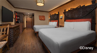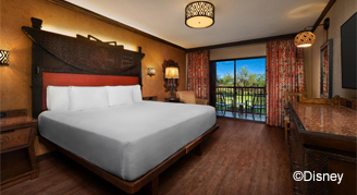 Step into the heart of Africa at this magnificent Resort hotel. Inspired by the traditional African kraal, the horseshoe-curved design provides spectacular views of four lush savannas that over 200 hoofed animals and birds call home. Delight in dazzling pool areas, exciting animal programs and one of the largest collections of African art in the United States as you experience your own African safari adventure with a touch of Disney magic.