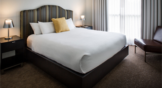 All suites offer a spacious floor plan that includes a fully-equipped full-size kitchen. Room features include Egyptian cotton linens and down comforters, a rainforest shower head and designer toiletries, high-speed internet, an LCD flat-screen TV, pay-per-view movies and more.