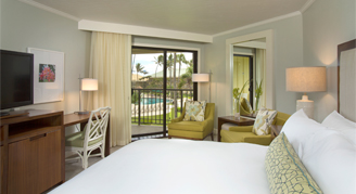 Located on Poipu beach on Kauai's southern shore, the property's lush 35 acres are landscaped with tropical plantings and foliage, an extensive cactus and succulent garden and many relaxing water features. Please note that these units do not have air conditioning.