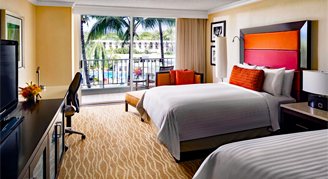 Rooms feature views of the resort's 26,000-square-foot pool.