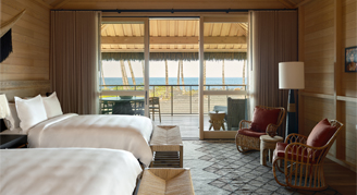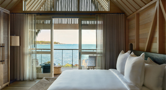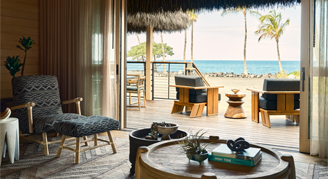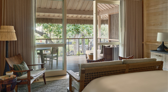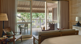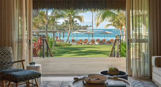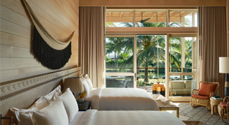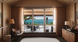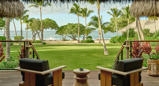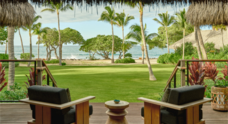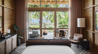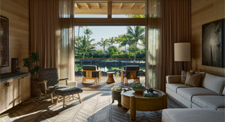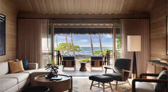 Two-Bedroom Kauhales are located on the ground floor and lead directly to a black sand beach. Additional amenities include a welcome amenity, departure amenity, wellness products by Dr. Barbara Sturm, choice of a personalized Cultural or Kilo Kai experience (subject to availability), an open air living room,