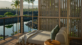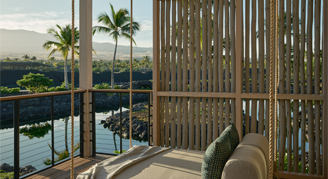 Kauhales are located on the ground floor and feature views of the ocean from the lanai. Additional amenities include a welcome amenity, a departure amenity, wellness products by Dr. Barbara Sturm, choice of a personalized Cultural or Kilo Kai experience (subject to availability), an oversized lanai, two and a half bathrooms including a soaking tub and an outdoor rain shower.