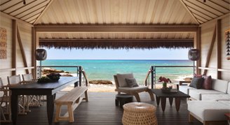 Four-Bedroom Kauhales are located on the ground floor. Additional amenities include a private pool, hot tub, fire pit, kitchen, a welcome amenity, a departure amenity, wellness products by Dr. Barbara Sturm, choice of a personalized Cultural or Kilo Kai experience (subject to availability), 60-minute Asaya Spa treatment for two, daily in-suite breakfast delivery and beverage service, one chef-curated dinner in suite, butler service, four and a half bathrooms and an outdoor rain shower.