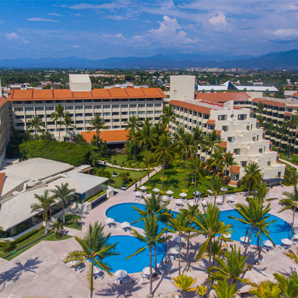 This all-inclusive resort is ideal for families, couples and people of all ages. The hotel is set on a long stretch of beach and features 366 rooms and suites, two free-form pools (including a pool exclusively for the Royal Level), five restaurants, bars, a kids' club with a splash pool, and daily activities. Guests of the Royal Level will also enjoy concierge service, room service, and exclusive access to a private restaurant and lounge. The Nuevo Vallarta shopping center is just a short stroll from the hotel, and two golf courses are nearby.