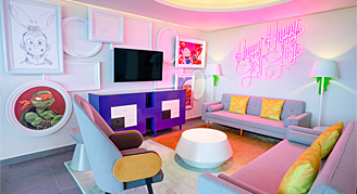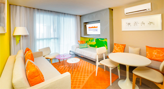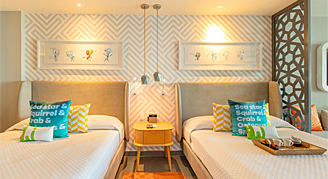 Suites feature a modern design, with bright colors and Nickelodeon art. All suites include a separate living area, swim-up options and two bathrooms. Complimentary wireless internet is offered throughout the resort.