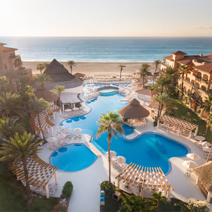 This all-inclusive resort embraces a traditional, colonial Mexican design, and reflects the beauty and splendor of Los Cabos. Located on the Sea of Cortez, the resort features 272 spacious suites, two pools with a swim-up bar, and four a la carte restaurants, a buffet, a grill and a café.