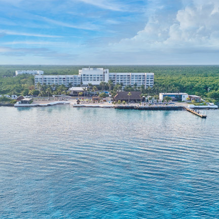 Situated in La Ceiba beach on the southern end of Cozumel Island, this boutique hotel boasts ocean views, accepts guests of all ages, and features a myriad of water activities, all near the second-largest coral reef system in the world. The hotel's 76 rooms and suites are modern and feature a sleek design. Amenities include two outdoor pools – one of which is a children's splash pad, two open-air restaurants, a swim-up bar, a fitness center and a private beach. Guests looking to relax can visit the El Cocay Spa, offering a variety of treatments. An all-inclusive plan is available for purchase.
