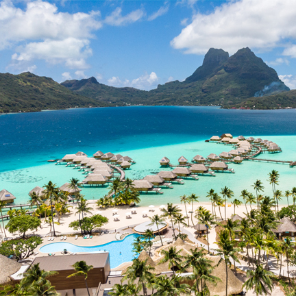 Bora Bora, French PolynesiaLocated on a long stretch of white sand beach in Bora Bora, this fully renovated resort is a tropical playground with unrestricted sunset views, diverse sea life, daily cultural activities, and access to the resort's private islet, Motu Tapu.